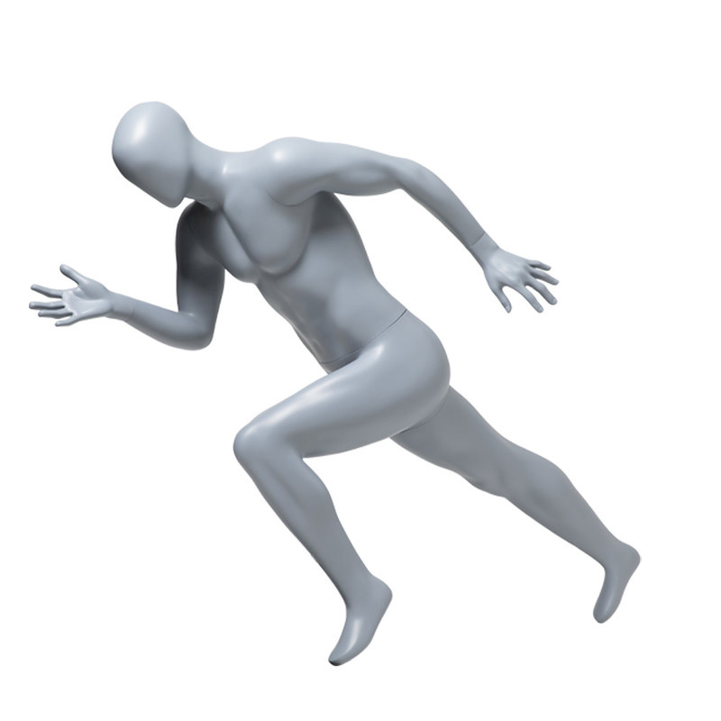 Manikin ini menggambarkan posisi berlari yang dinamis, membawa rasa gerakan dan aktivitas ke lingkungan ritel.karena menambahkan unsur realisme dan menampilkan bagaimana pakaian mungkin terlihat dan bergerak pada tubuh yang aktif.
