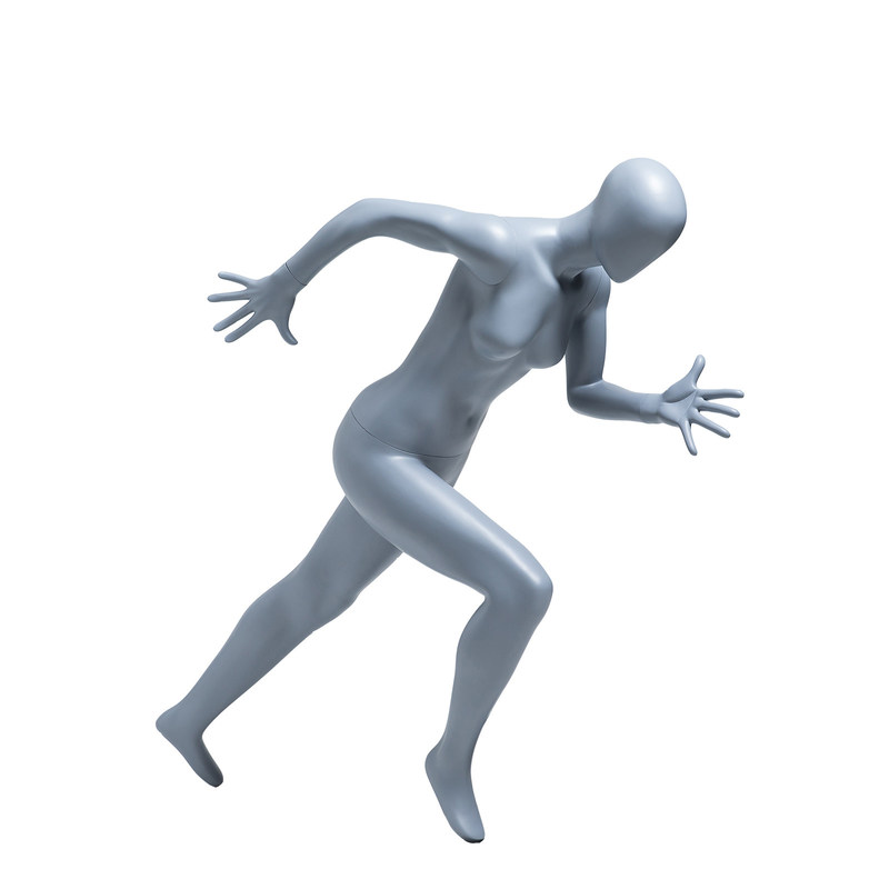 Black full body frosted glass fiber female running body clothing display mannequin is a stunning and sophisticated display piece that effortlessly showcases the beauty and functionality of running apparelDirancang dengan perhatian yang teliti pada detail, manekin ini dirancang untuk menangkap esensi dari pelari wanita yang dinamis dan aktif.