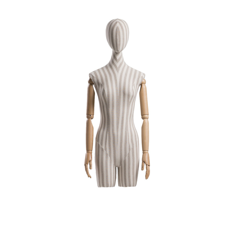 Model setengah tubuh ini menarik banyak perhatian dengan keanggunan dan busana.Posisinya yang mulia dan sosoknya yang sempurna membuatnya menjadi kandidat yang ideal untuk memamerkan pakaian modis.Kain linen bergaris cokelatnya memberikan nuansa alami, sekaligus memberikan sentuhan kehangatan dan kenyamanan.Desain model ini menekankan detail dan kerajinan.Garisnya halus, mencerminkan gaya modern dan minimalis.Kontur wajahnya yang halus memberikan rasa keanggunan dan kepercayaan diri, sementara juga menambahkan kepribadian yang unik untuk tampilan pakaian Anda.
